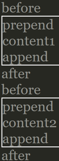 Adds the specified class(es) to each element in the set of matched elements. Insert content, specified by the parameter, after each element in the set of matched elements. Insert content, specified by the parameter, to the end of each element in the set of