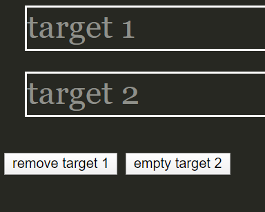 remove는 첫번째 박스 전체가 사라지고 . empty는 박스안에 target2 text가 사라짐.